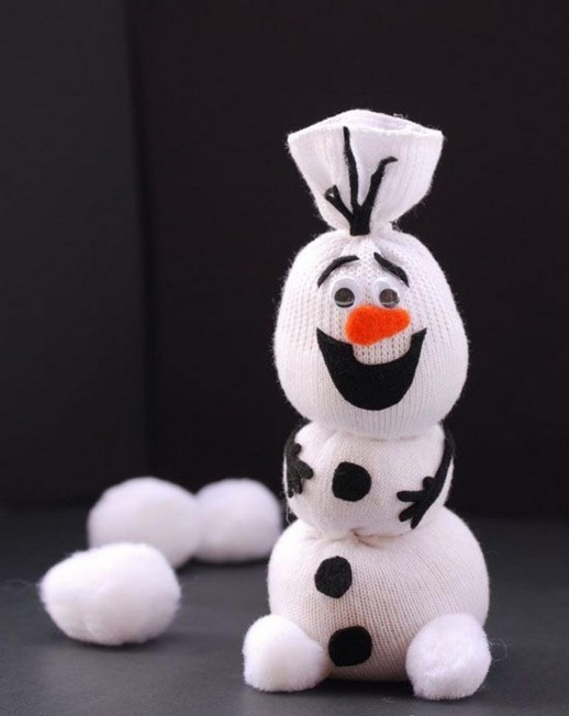 Hi, I’m Olaf! You can make me only from white sock then fill with rice. To make my nose, you can use flannel or any kind fabric. Add black buttons on me. Don’t forget t put hat and scarf too.