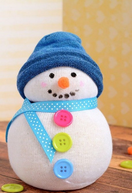 How do you make a sock snowman? This attractive Christmas craft is perfect for everyone who always missing their sock. To make this sock snowman, all you need are a white sock, a sock in colour for the hat, rice, rubber bands, colourful buttons, ribbon, glue, markers or paint, and Pom Pom in various colours. You can make this crafty sock at your home and there are some photos we’ve collected to suggest you make a sock snowman.