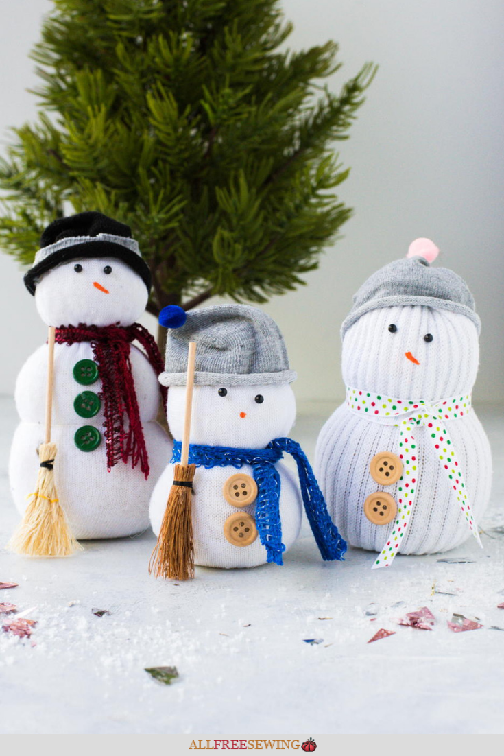 As you can see, this sock snowman is made in a different size. You can make yours even in various colours too. The white sock is for the body and uses a different colour to make the hat. Add a broom to complete the appearance.