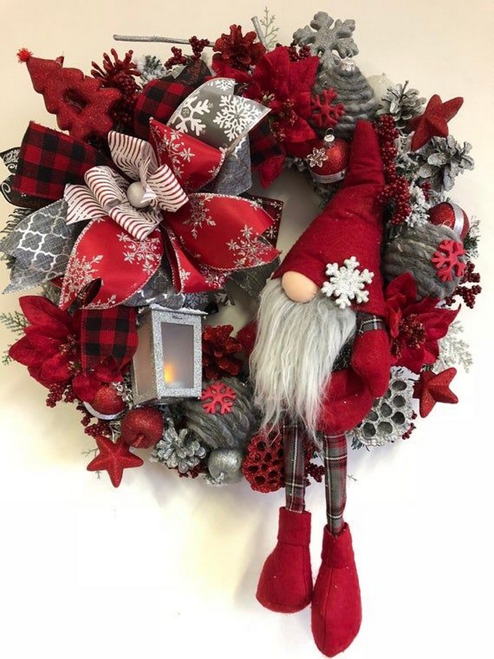 Not only for the front porch, but you may also place this red ribbon in any space you wish. The wreath with a red ribbon always brings joy to your Christmas.