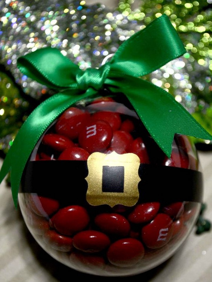 It may be a great idea to use the bulb to put M&M candy for a Christmas gift. Buy holiday M&M in five flavors ( chocolate almond, mint chocolate, mocha, raspberry almond, and tripe chocolate; milk, dark, and white chocolate) on the market. After that, put t them in the faux bulb and hang them on the ribbon. Sending this gift using a lovely box to the loved one.