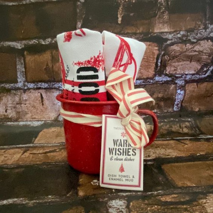 It’s a good idea for you to give a mug to your friends who collecting such beautiful mugs. With any pattern, ornaments, or even Mozaic. Then complete the basket with other things like coffee or chocolate. Freshen up with plant touch.