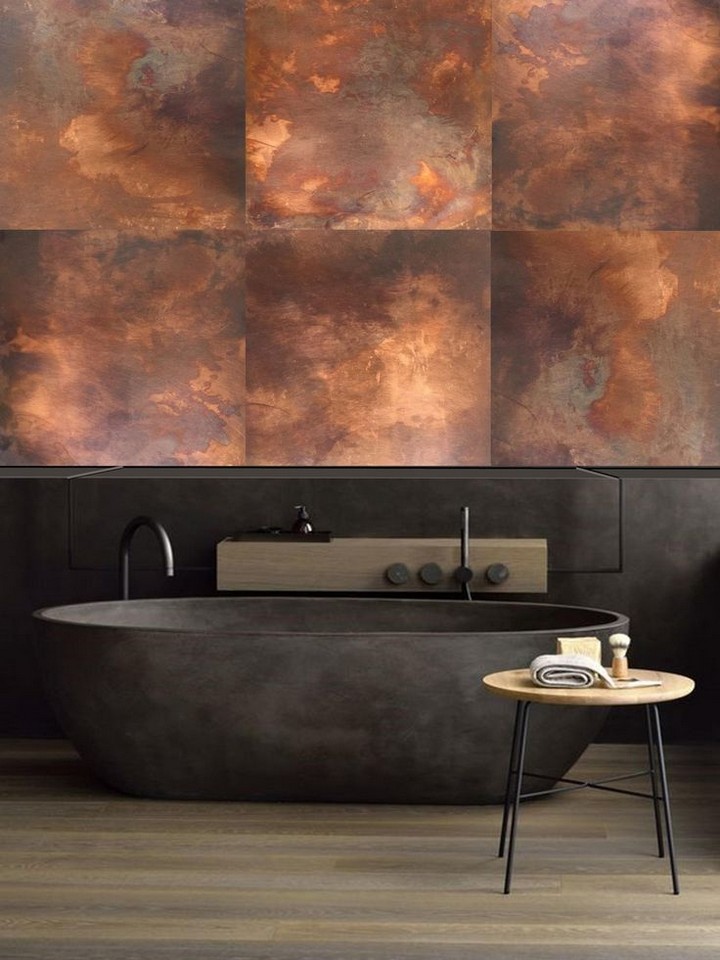 - Stainless Steel or Copper Tiles: Add a touch of industrial or rustic glamour to the bathroom.