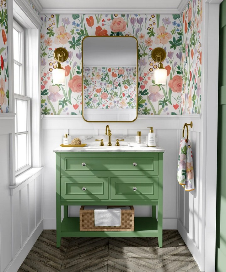 - Beadboard: Adds a charming, cottage-style look to the bathroom. It’s often used on the lower half of the walls, paired with paint or wallpaper above.