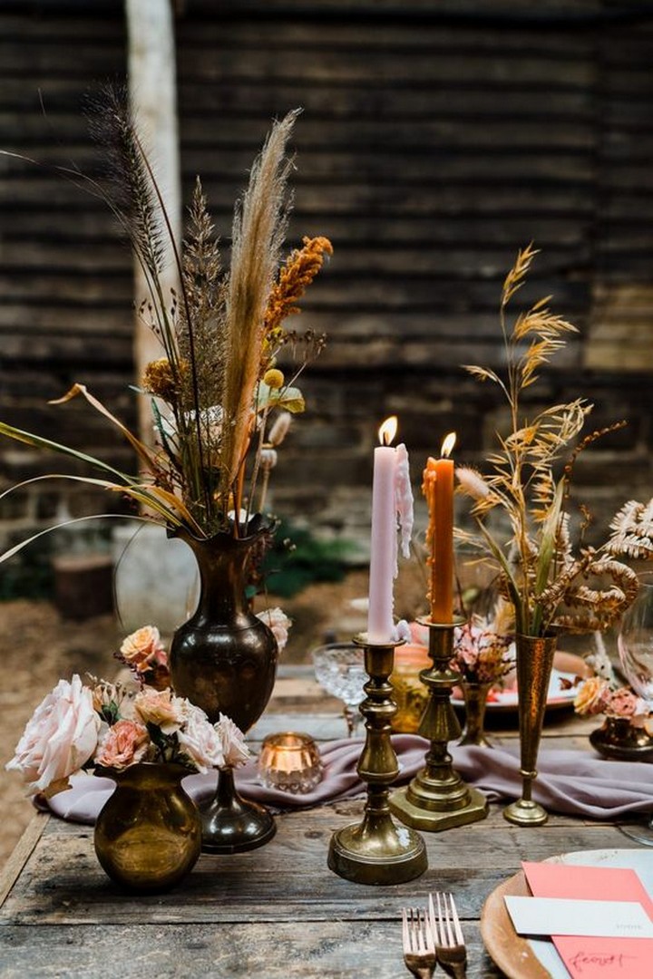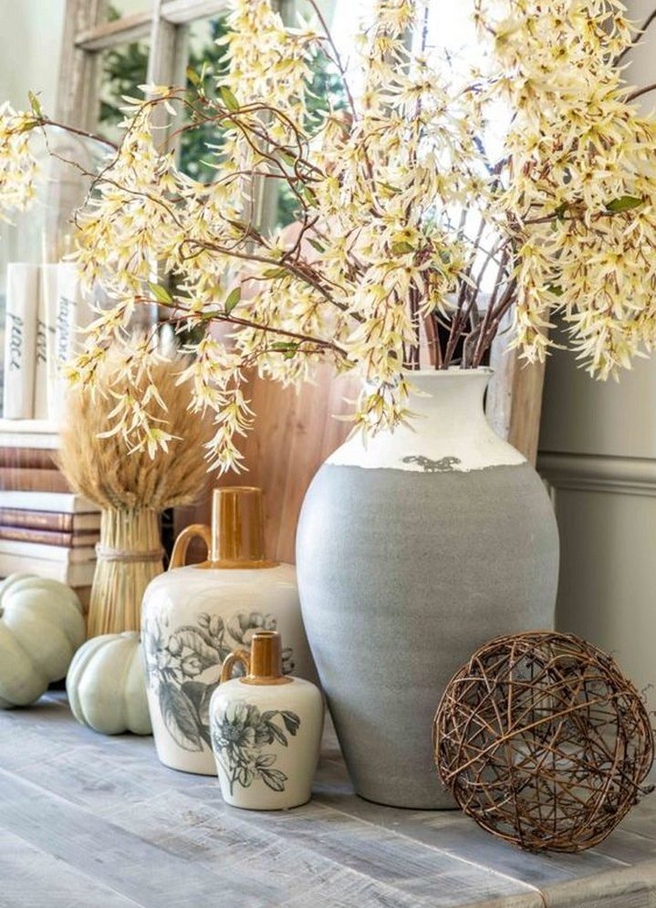Arrange a bouquet of fall foliage in a vase. You can use branches with colorful leaves, sunflowers, or dried wheat stems for a natural touch.