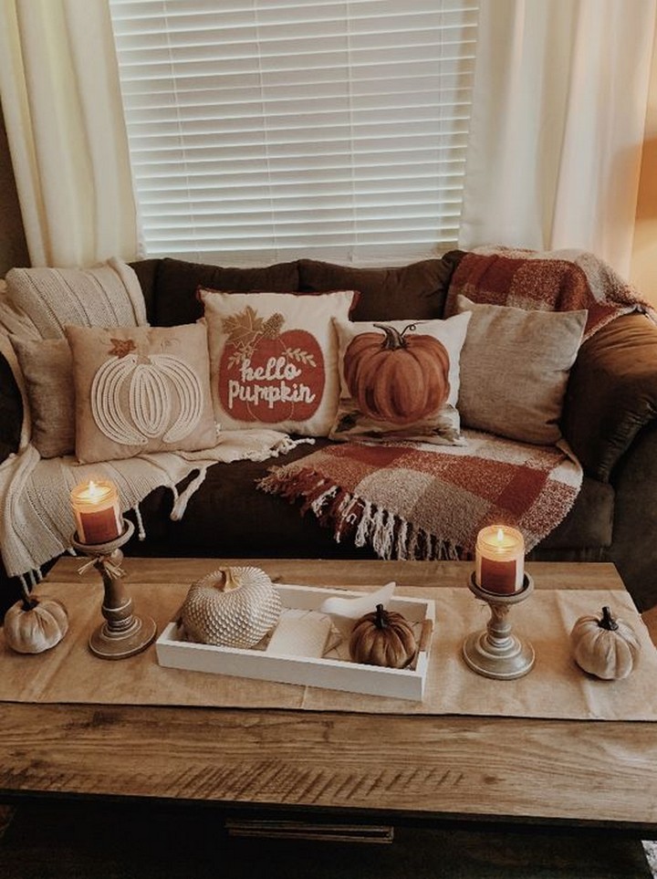 Drape a cozy fall-themed blanket or throw over one corner of your coffee table. It not only adds warmth but also invites you to snuggle up with a hot drink.