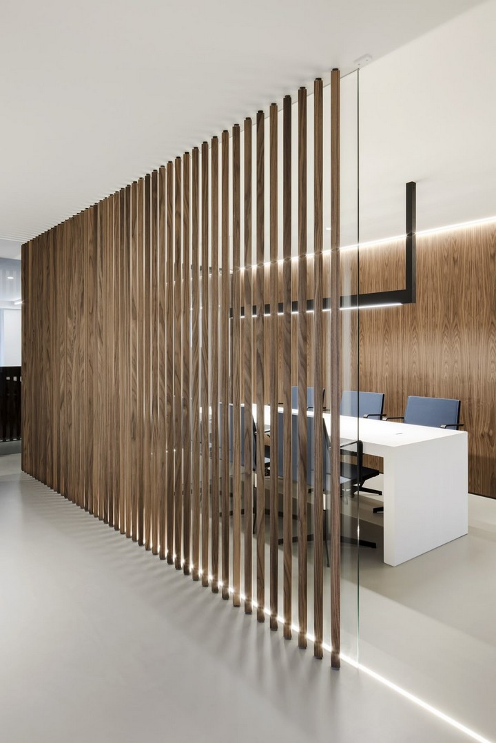 Acoustic Considerations: Wood paneling should be strategically placed where sound absorption is needed most, behind workstations, in meeting rooms, and along high-traffic corridors.