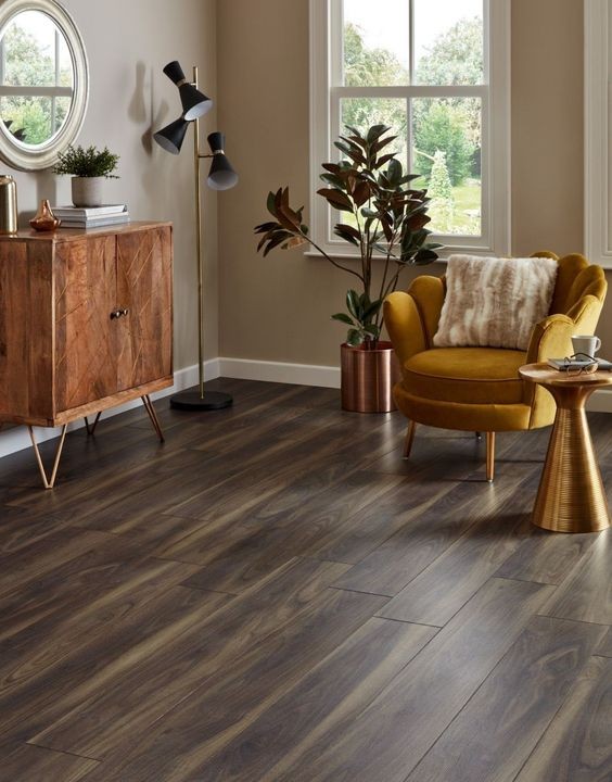 Wide plank hardwood flooring is a trendy choice that gives a rustic and spacious feel to a room. It can be particularly striking in larger living areas.