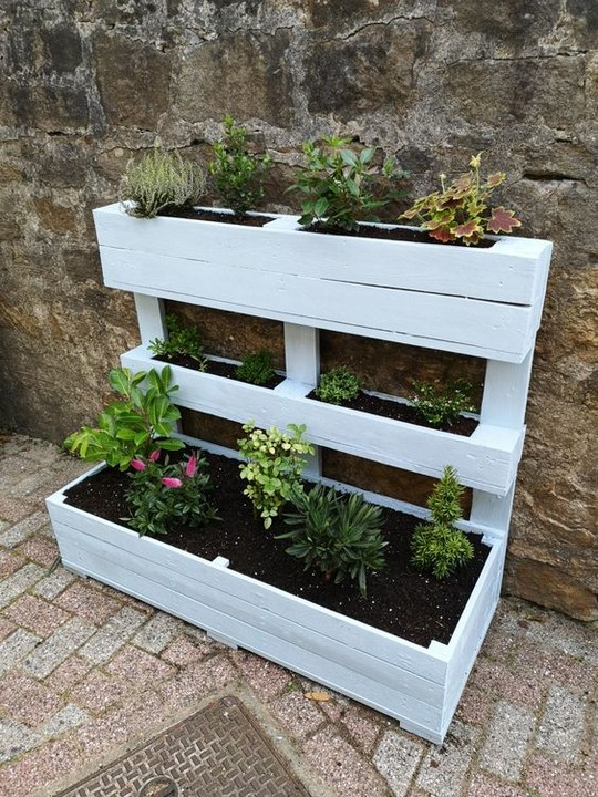 – Create a ladder-style planter by stacking pallets horizontally.