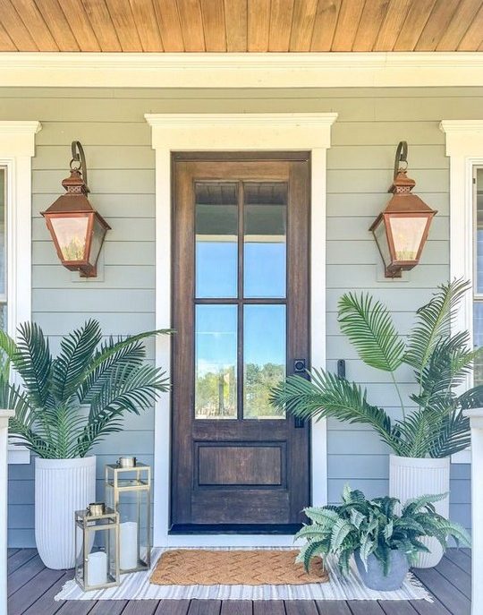 Choose a statement front door painted in a bold color, such as deep blue or red, for a pop of contrast.