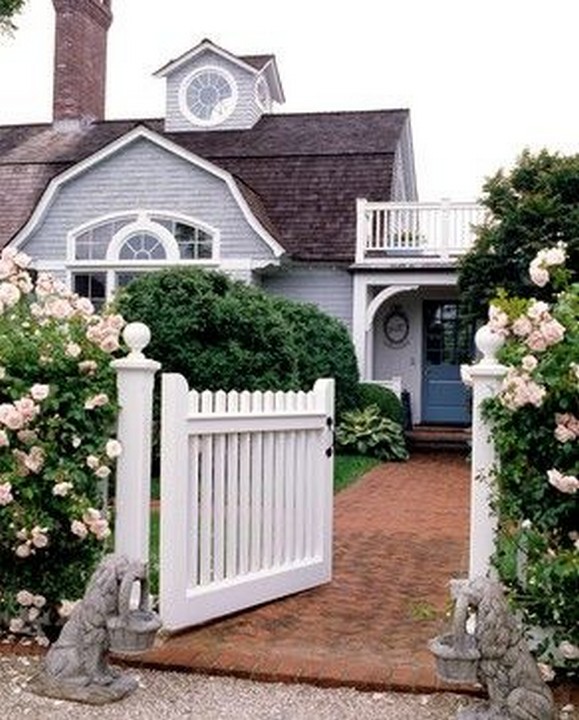 A white picket fence can complete the farmhouse look while adding a touch of coastal charm.