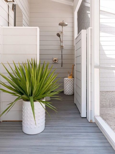 If you’re close to the beach, consider adding an outdoor shower, a practical and beachy addition.
