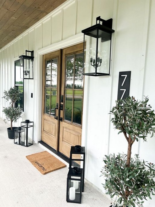 Incorporate lantern-style or nautical outdoor lighting fixtures to enhance the coastal farmhouse look.