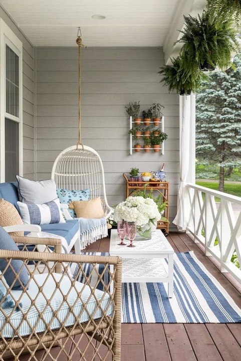 – Decorate the porch with nautical or beach-themed accessories like lanterns, shells, and a rope swing.