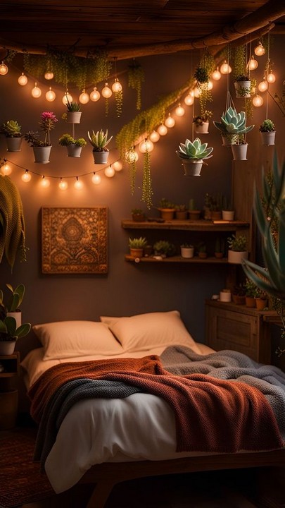 Install floating shelves and arrange them with decorative items, plants, and personal mementos. This not only decorates the wall but also adds functional storage.