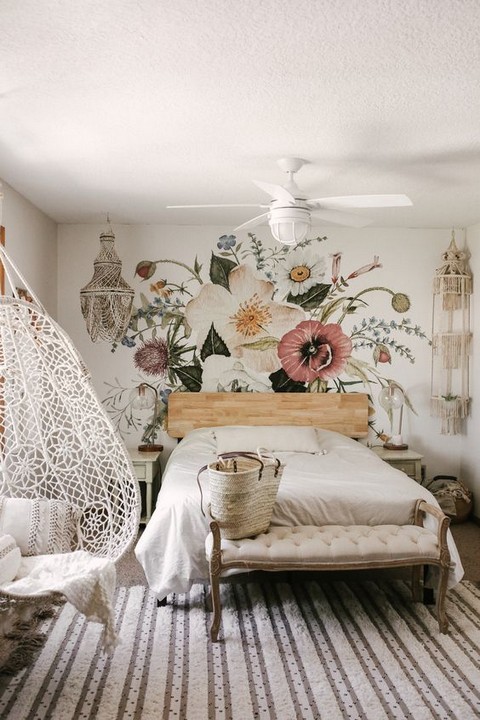 Use wallpaper with a bold pattern or design on the accent wall. There are various options, from floral prints to geometric patterns, that can transform the look of your bedroom.