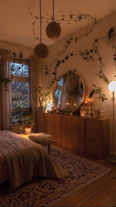 Install floating shelves and arrange them with decorative items, plants, and personal mementos. This not only decorates the wall but also adds functional storage.