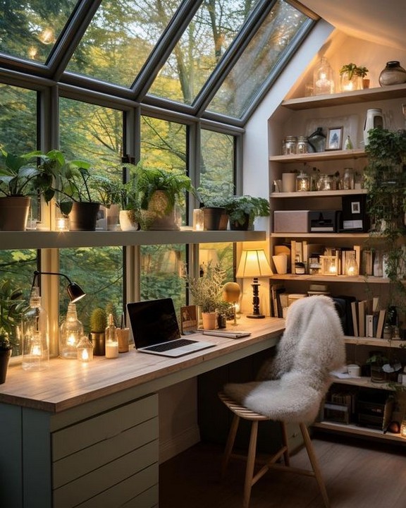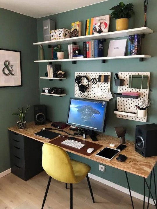 Choose a color scheme that promotes focus and creativity. Calm and neutral colors like blues and greens can have a soothing effect, while pops of color can add energy.
