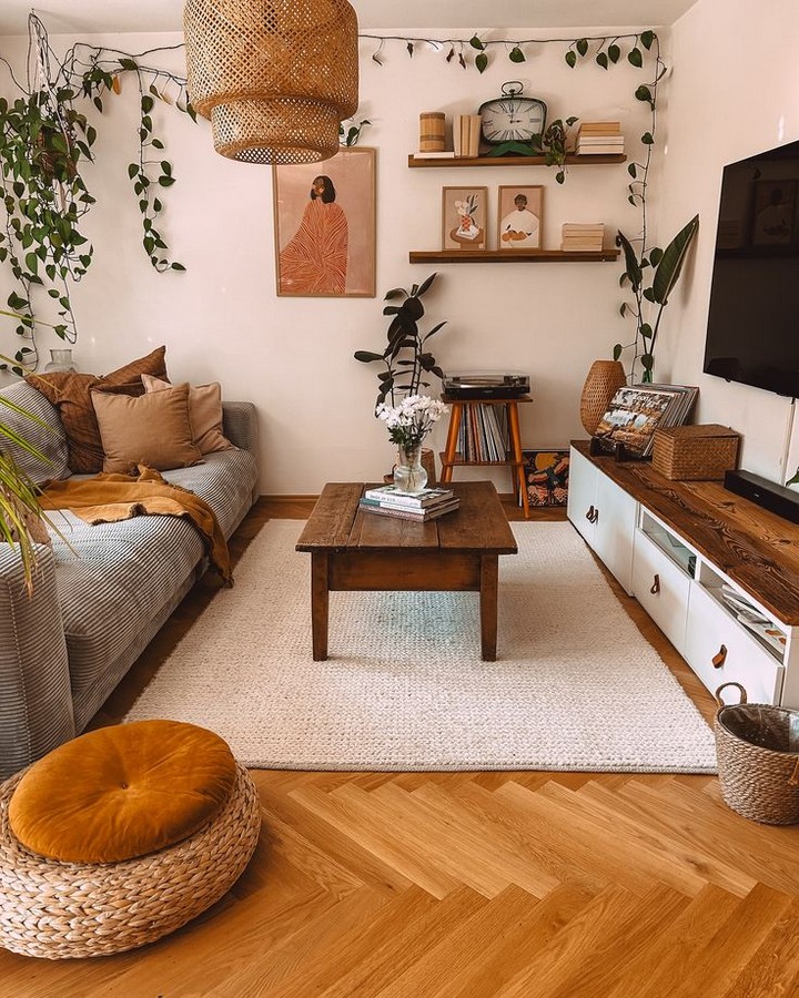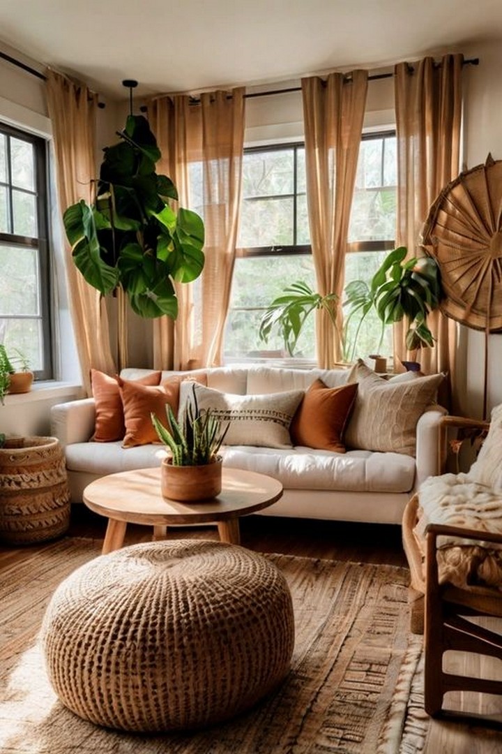 Incorporating natural brown materials like rattan, jute, and wicker brings organic texture and warmth to living rooms. These materials reference biophilic design connecting interior spaces to nature while providing visual and tactile interest.