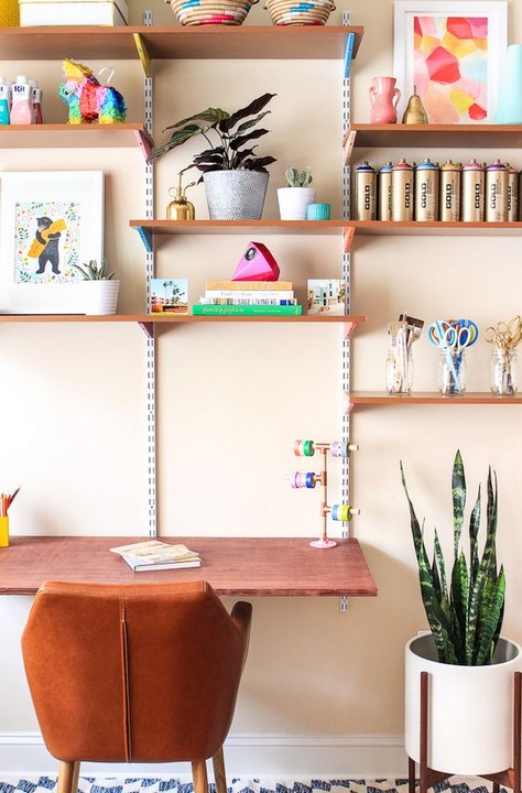 Create a minimalist workspace with a floating wall desk. It takes up less visual space and gives a clean and modern look.