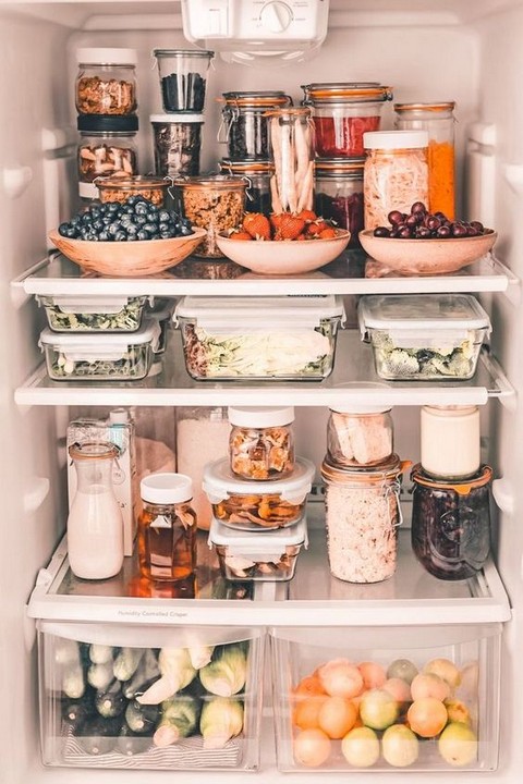 - Use clear acrylic or glass storage containers for items like makeup, jewelry, or kitchen staples.
