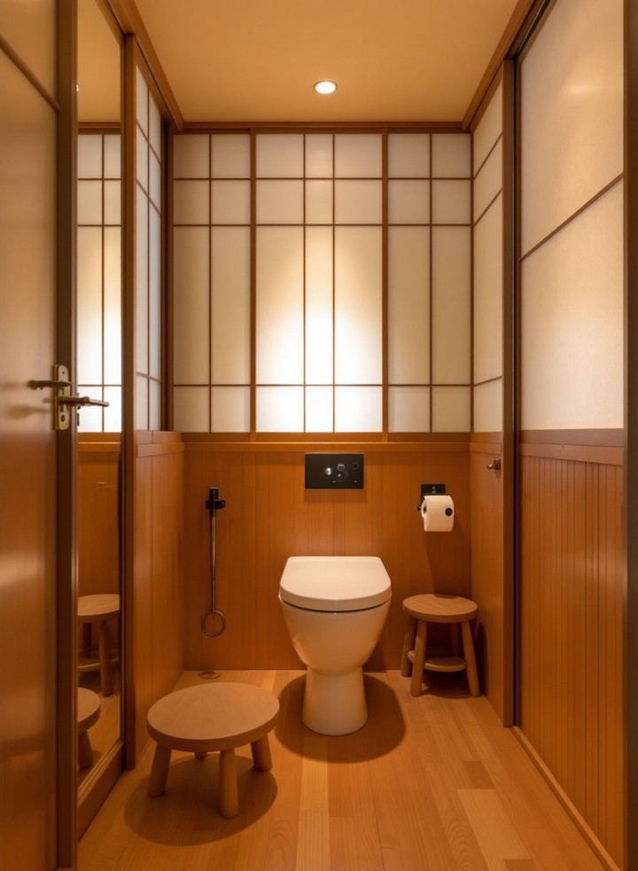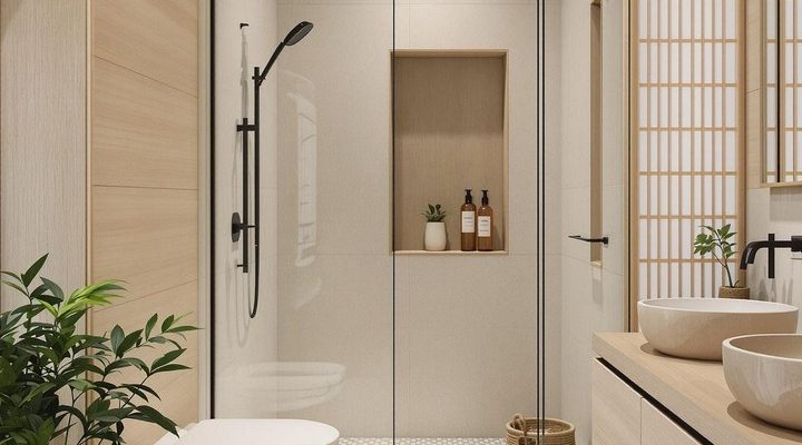 Inspired by Japanese design principles, this layout separates wet and dry areas while maximizing functionality. A compact shower area, wall-hung toilet, and minimal vanity create surprising efficiency.