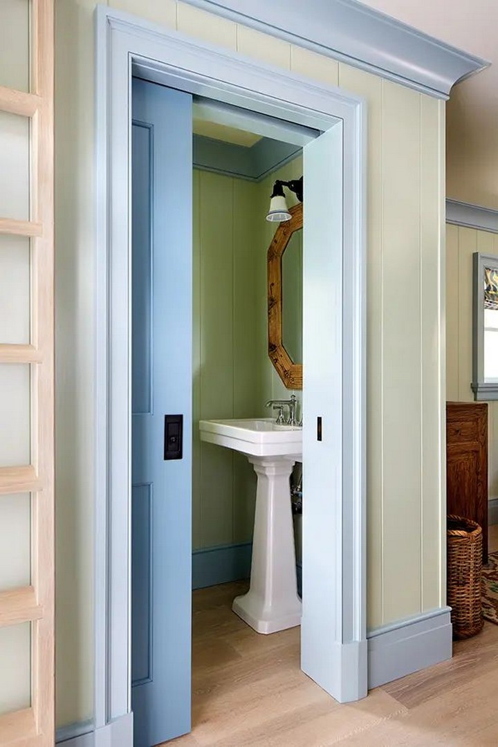 Best for: Bathrooms where traditional door swings interfere with fixture placement.