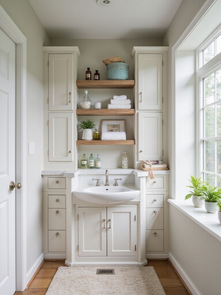 Why it works: The exposed floor area tricks the eye into perceiving more space, while wall-mounting keeps everything organized and accessible.