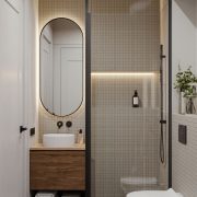 Use varying floor heights to define spaces within the bathroom. A raised platform for the shower area or sunken vanity zone creates visual interest while maximizing functionality.