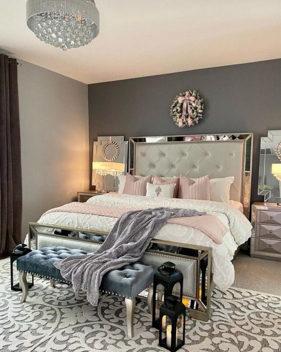 – Decorate with mirrored furniture, such as a mirrored dresser or nightstands, to reflect light and add a glamorous touch.
