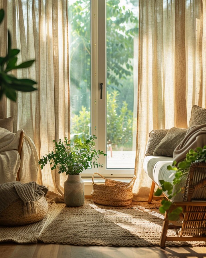Choose window treatments that enhance rather than compete with your minimalist aesthetic. Natural linen curtains in warm white or soft gray can soften harsh sunlight while adding texture and movement to the room. Avoid busy patterns or overly structured treatments.