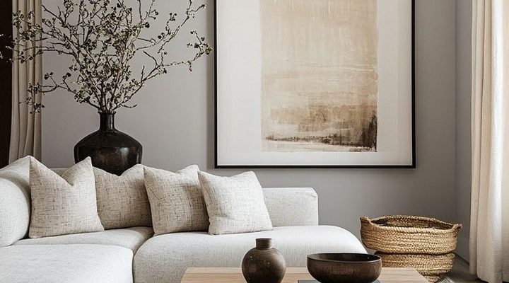Start with a palette of warm neutrals that create depth without overwhelming the senses. Think creamy whites, soft beiges, and gentle grays with undertones of warmth rather than cool. Paint walls in Benjamin Moore’s Cloud White or Sherwin Williams’ Natural Linen for a foundation that feels both clean and inviting. Layer in natural wood tones through flooring or furniture to ground the space and add organic warmth.