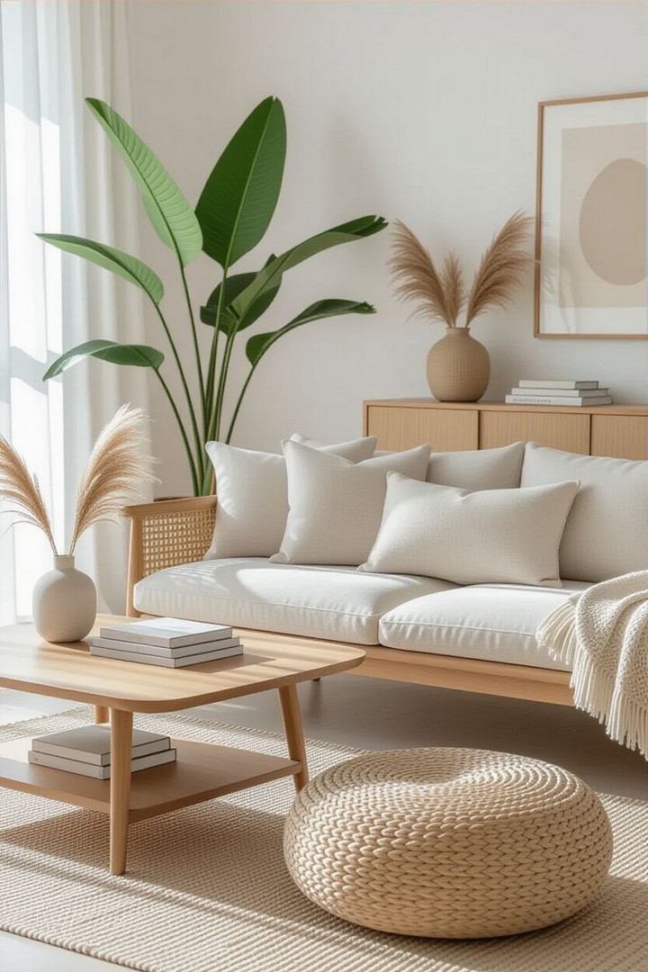 Embrace the Japanese concept of floor living by incorporating oversized floor cushions and low-profile seating. This creates an intimate, grounded feeling while maintaining clean lines. Choose cushions in natural fabrics like linen or cotton in neutral tones that complement your overall palette.