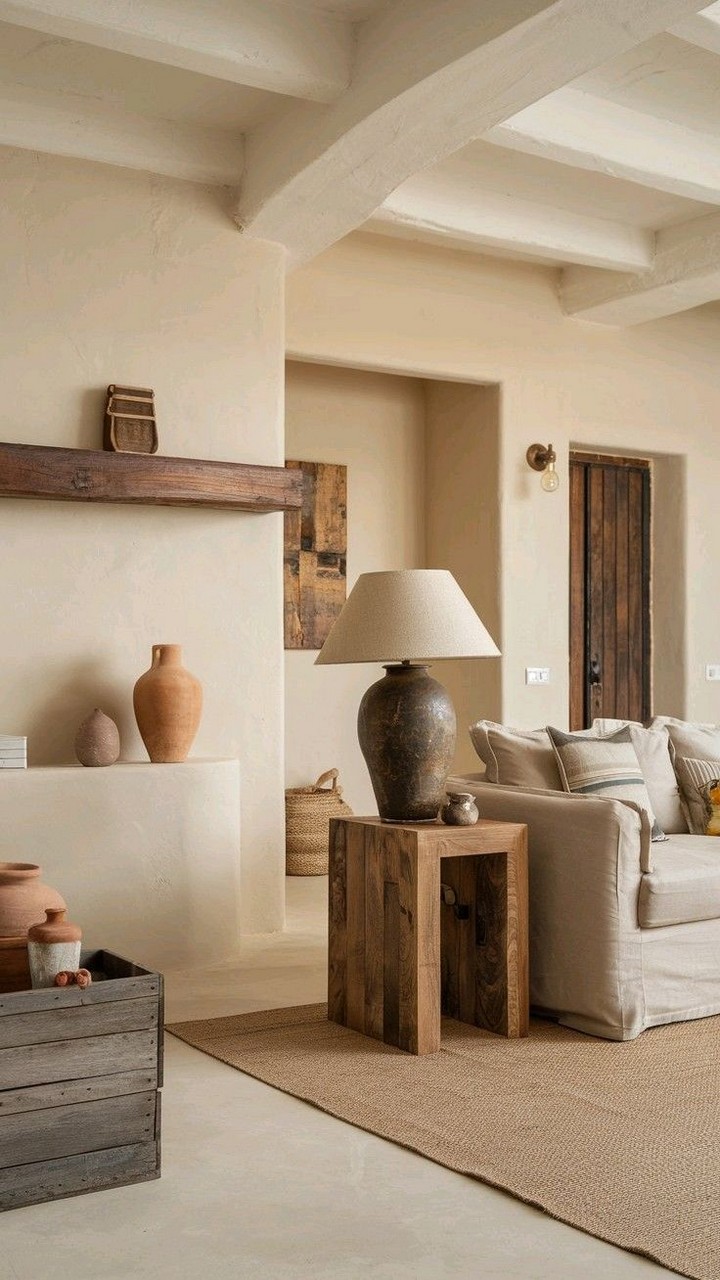 Incorporate warm wood tones through carefully selected furniture pieces or architectural elements. A live-edge coffee table, floating wooden shelves, or wooden ceiling beams add organic warmth and visual interest while maintaining clean, minimalist lines.