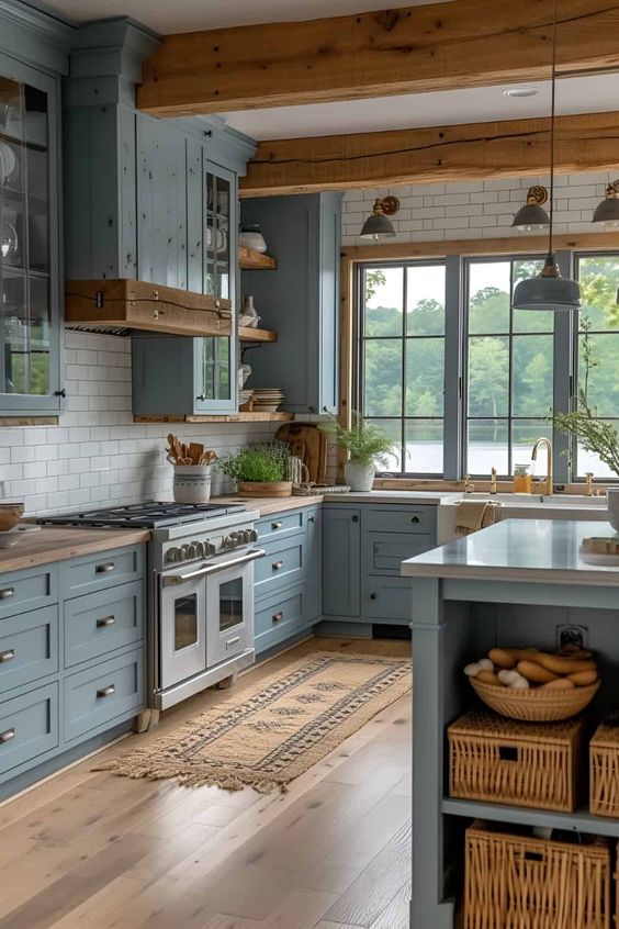 Consider cabinets with a horizontal orientation for a modern twist. Horizontal lines can visually widen the space and create a dynamic look.