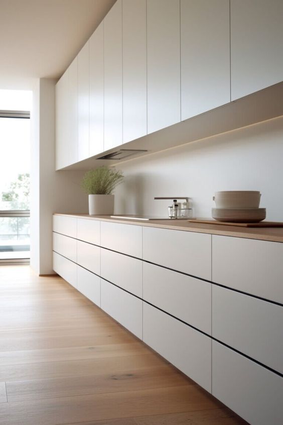 Opt for matte finishes on your cabinets. Matte surfaces are not only on-trend but also contribute to a sophisticated and understated modern style.