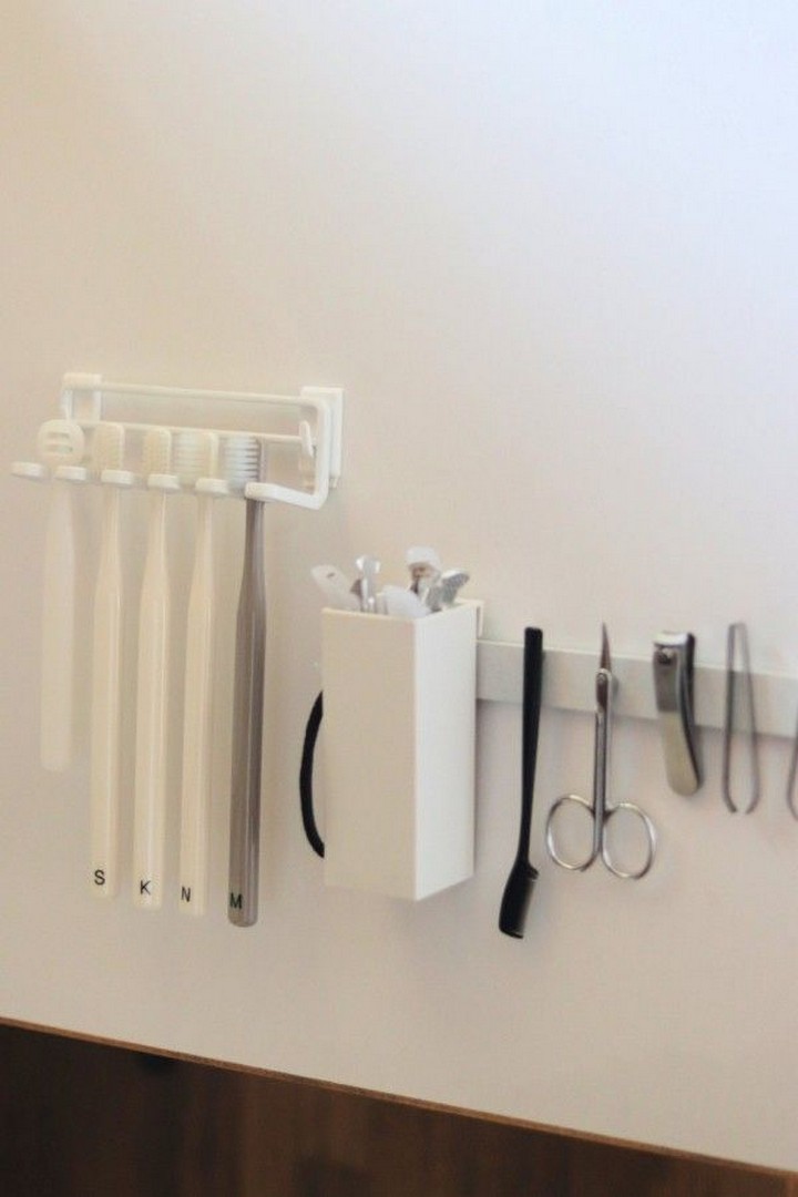 Consider installing a magnetic strip inside your medicine cabinet or on the side of your vanity for discreet storage of small metal items.