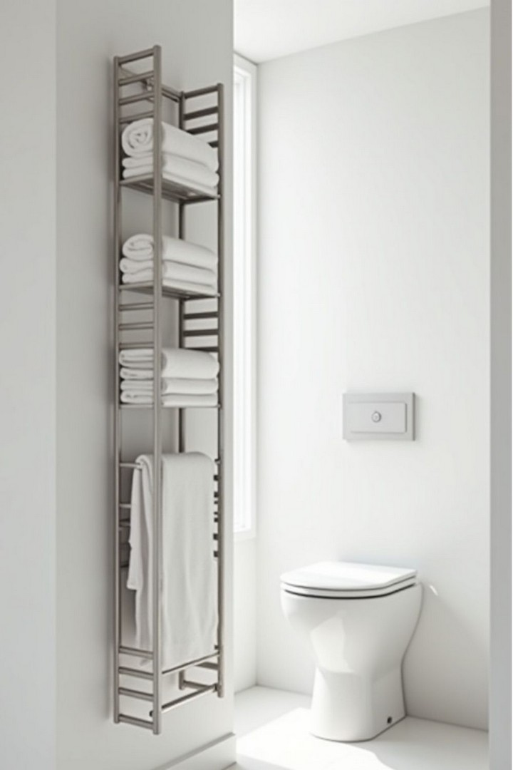 Traditional towel bars take up wall space while providing limited storage. Instead, consider towel storage solutions that offer additional functionality. A towel ladder provides multiple hanging points in a compact footprint, while heated towel rails serve the dual purpose of warming towels and providing storage.