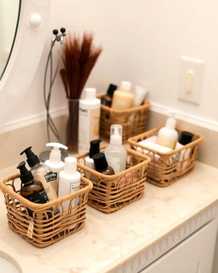 Focus on storing only the items you use regularly in your bathroom, and find alternative storage locations for backup supplies, seasonal items, and rarely used products.