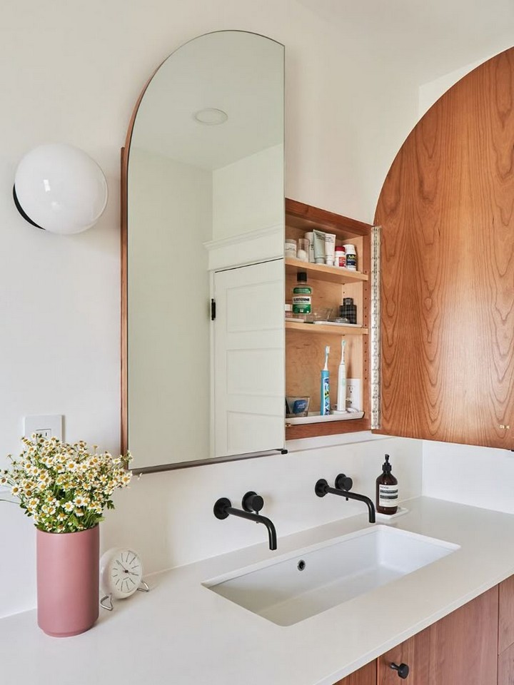 For maximum impact, choose a medicine cabinet that spans the width of your vanity to create the illusion of a larger space while dramatically increasing storage capacity.
