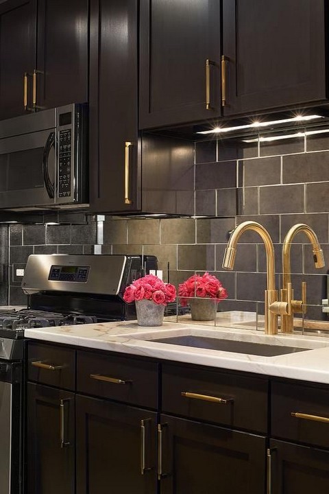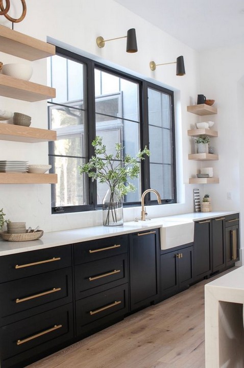 Combine black cabinets with gold or brass hardware for a luxurious and on-trend aesthetic. The warm metallic accents complement the richness of black.