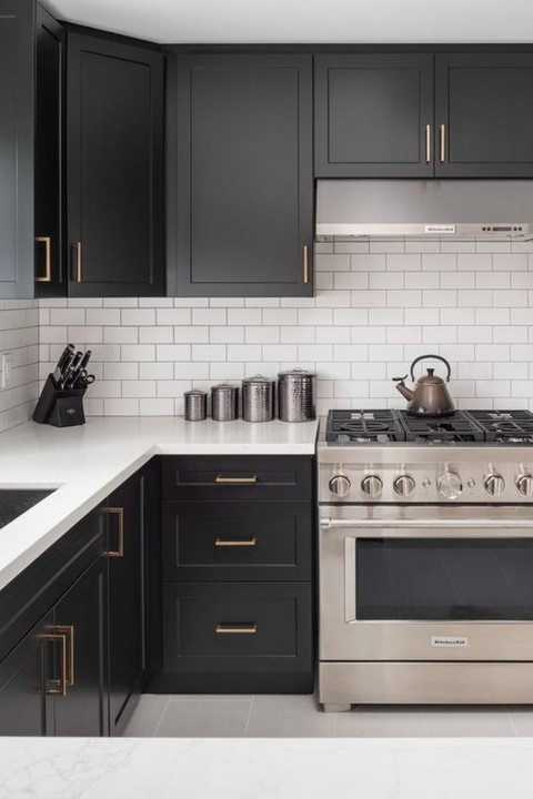 Create a classic look by pairing black cabinets with white countertops and backsplash. The high contrast between the two colors adds visual interest.