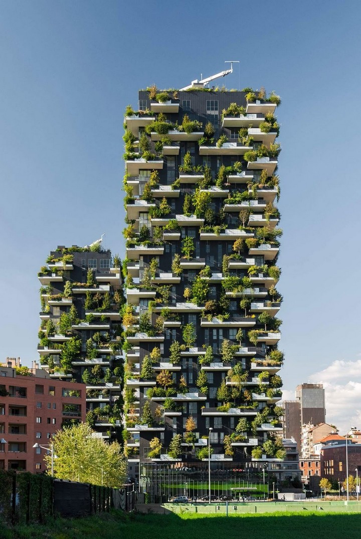 Stefano Boeri Architects’ “Vertical Forest” features two residential and office towers covered with 900 trees, 5,000 shrubs, and 11,000 plants. The vegetation absorbs CO2, produces oxygen, and filters dust particles from the urban environment while providing insulation that reduces energy needs. Each plant was selected for its ability to withstand wind conditions at various heights and oriented according to the façade’s sun exposure. This pioneering approach to high-rise afforestation has inspired similar projects worldwide and demonstrates how buildings can actively contribute to environmental healing.