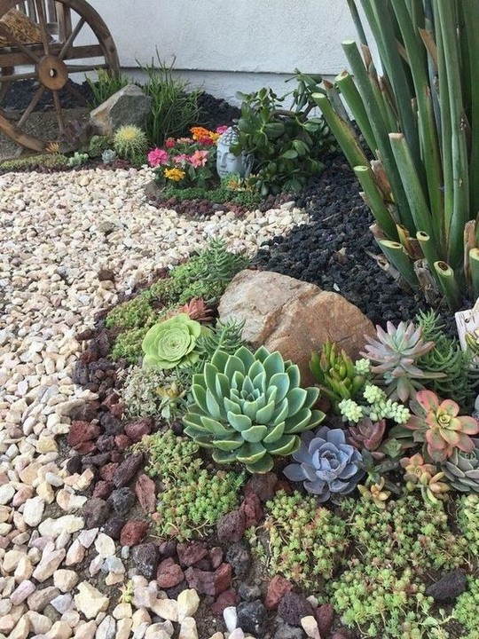 - Plant a variety of succulents in and around rocks to create a natural, desert-like appearance.