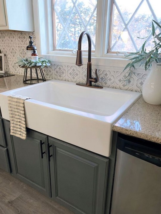 A farmhouse-style sink in the kitchen is a classic choice that fits the rustic theme.