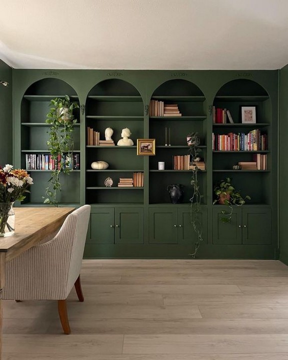 Maximize storage with built-in shelving and cabinets to keep the space organized and clutter-free.