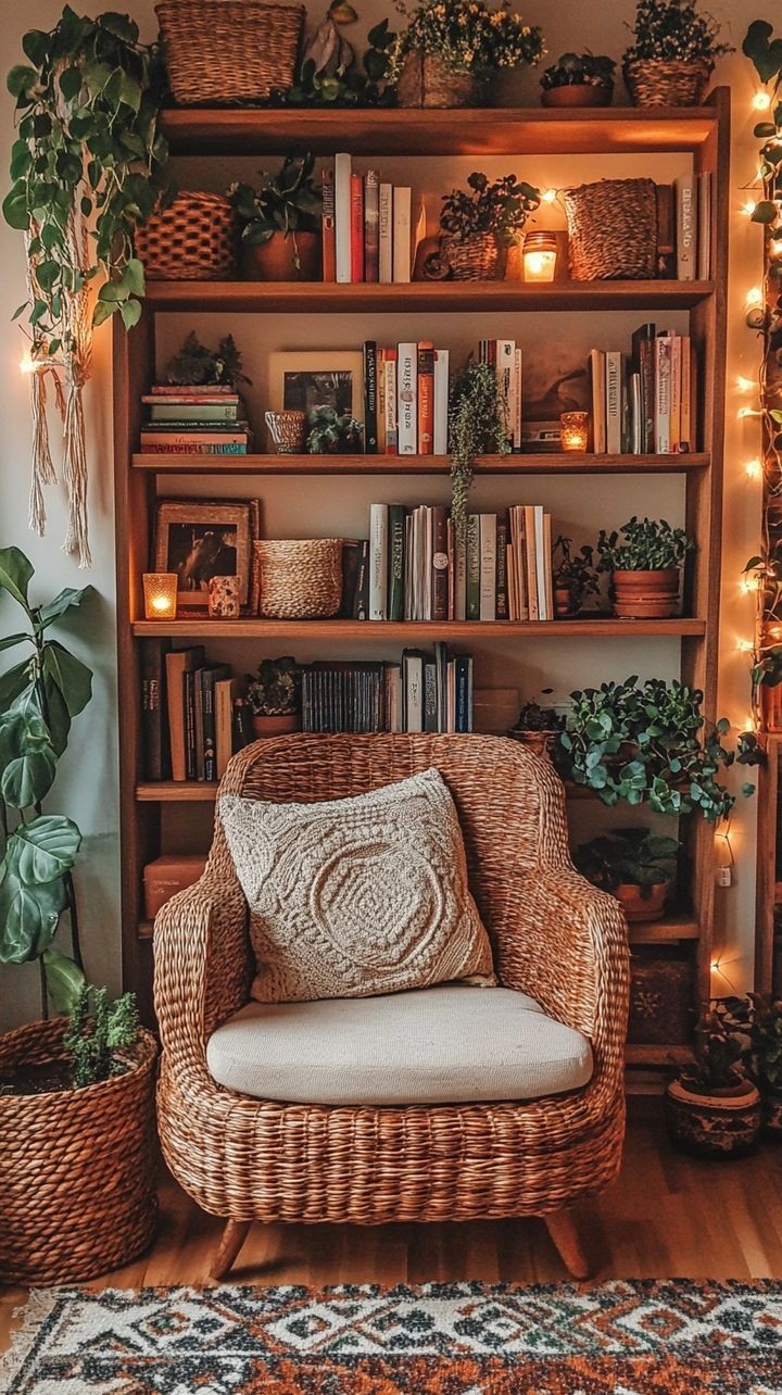 Harsh overhead lighting is the enemy of coziness. Instead, create layers of warm, ambient lighting using table lamps, floor lamps, string lights, and candles. Aim for multiple light sources at different heights to create depth and avoid the dreaded “office building” feel. String lights aren’t just for college dorms, when used thoughtfully, they can add a magical sparkle to any space. Drape them around windows, along bookcases, or create a makeshift headboard with them.