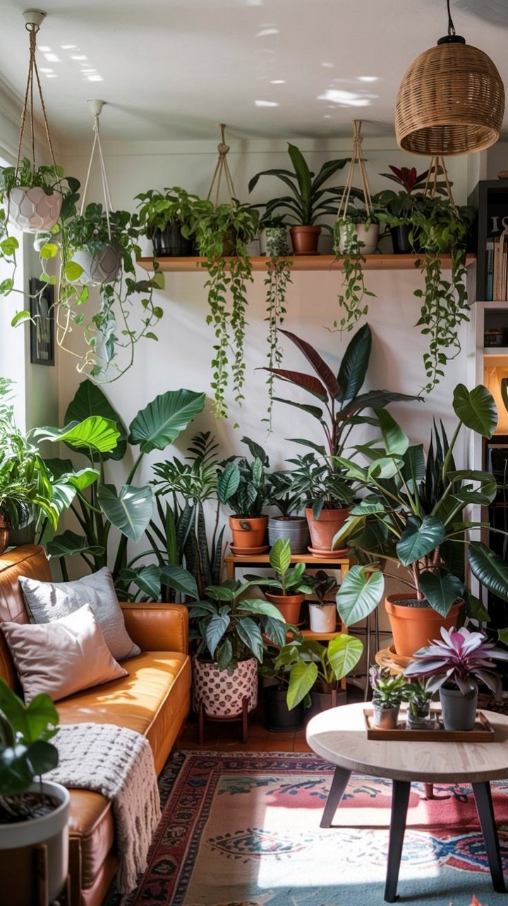 Bringing nature indoors is crucial for creating a cozy, lived-in feel. Plants not only purify the air but also add life, color, and texture to your space. For apartment living, consider low-maintenance options like pothos, snake plants, rubber trees, or fiddle leaf figs. Create plant clusters at different heights using plant stands, hanging planters, and floor pots. The varying heights create visual interest while the greenery adds a fresh, organic element to your cozy aesthetic.