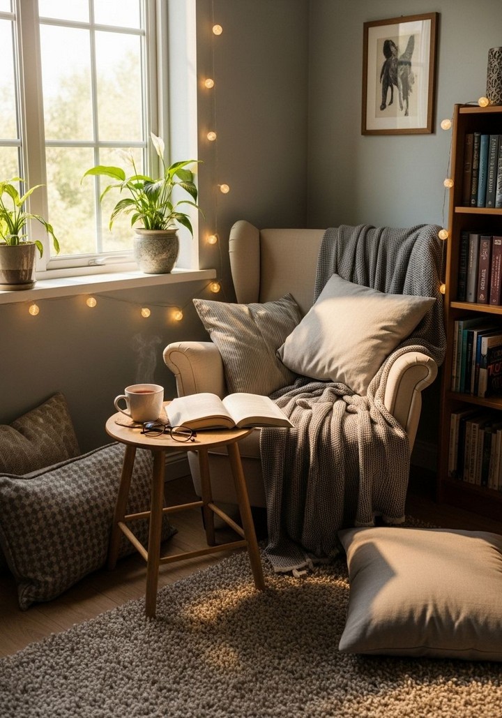 Every cozy apartment needs a designated spot for relaxation and reflection. Create a reading nook using a comfortable chair, good lighting, a side table for your coffee or tea, and a basket for storing books and blankets. If space is limited, even a few floor cushions by a window with a small bookshelf can create a cozy retreat. The important thing is having a dedicated space that invites you to slow down and unwind.