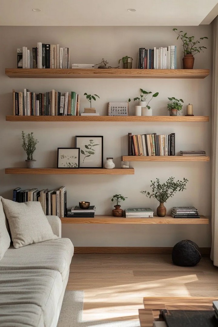 Floating shelves serve dual purposes in cozy apartment design, they provide much-needed storage while creating opportunities to display your favorite objects. Style them with a mix of books, plants, candles, and personal treasures. The “rule of three” works well for shelf styling: group objects in odd numbers and vary heights and textures for visual interest. Leave some breathing room between items to avoid a cluttered look.